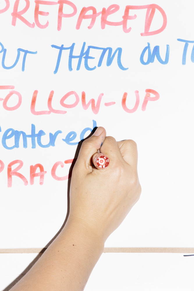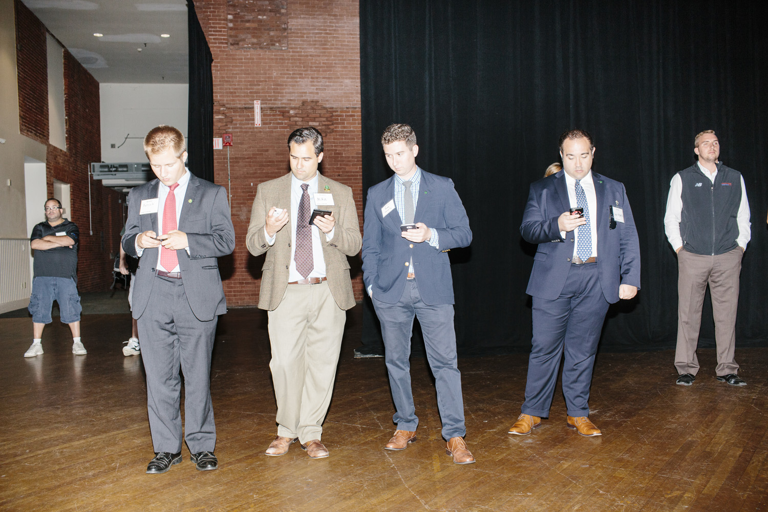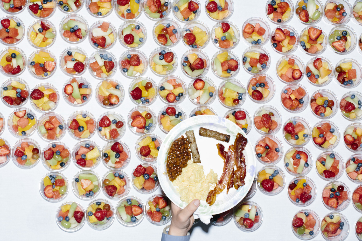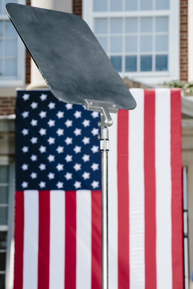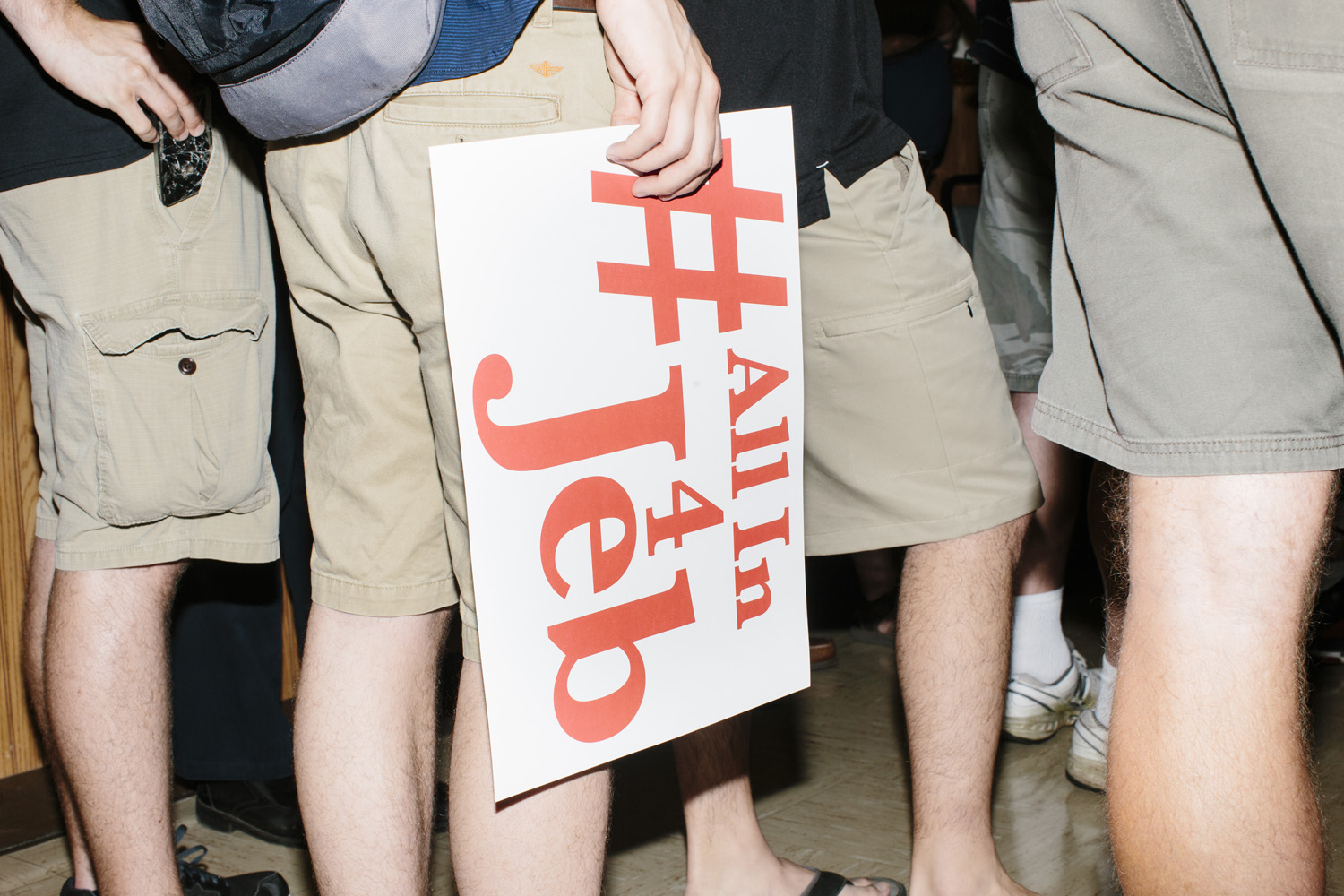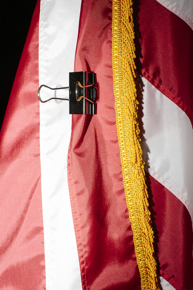 I’ve taken a different approach as I photograph this story, using a harsh and direct flash, evocative of early press photography. The campaigns usually bring in their own lighting and backdrops, and this technique is a deliberate attempt to subvert their control of the optics of politics. Shooting in this way reveals the edges of this political spectacle: cold food left on a buffet line, duct tape holding up the banners, wiring in the corner of the room, bored staffers and journalists, binder clips keeping the American flag in perfect posture. The work is not meant to be critical of any candidates, but rather to focus on the banality of these events as they are set up, performed, and taken down again and again and again.