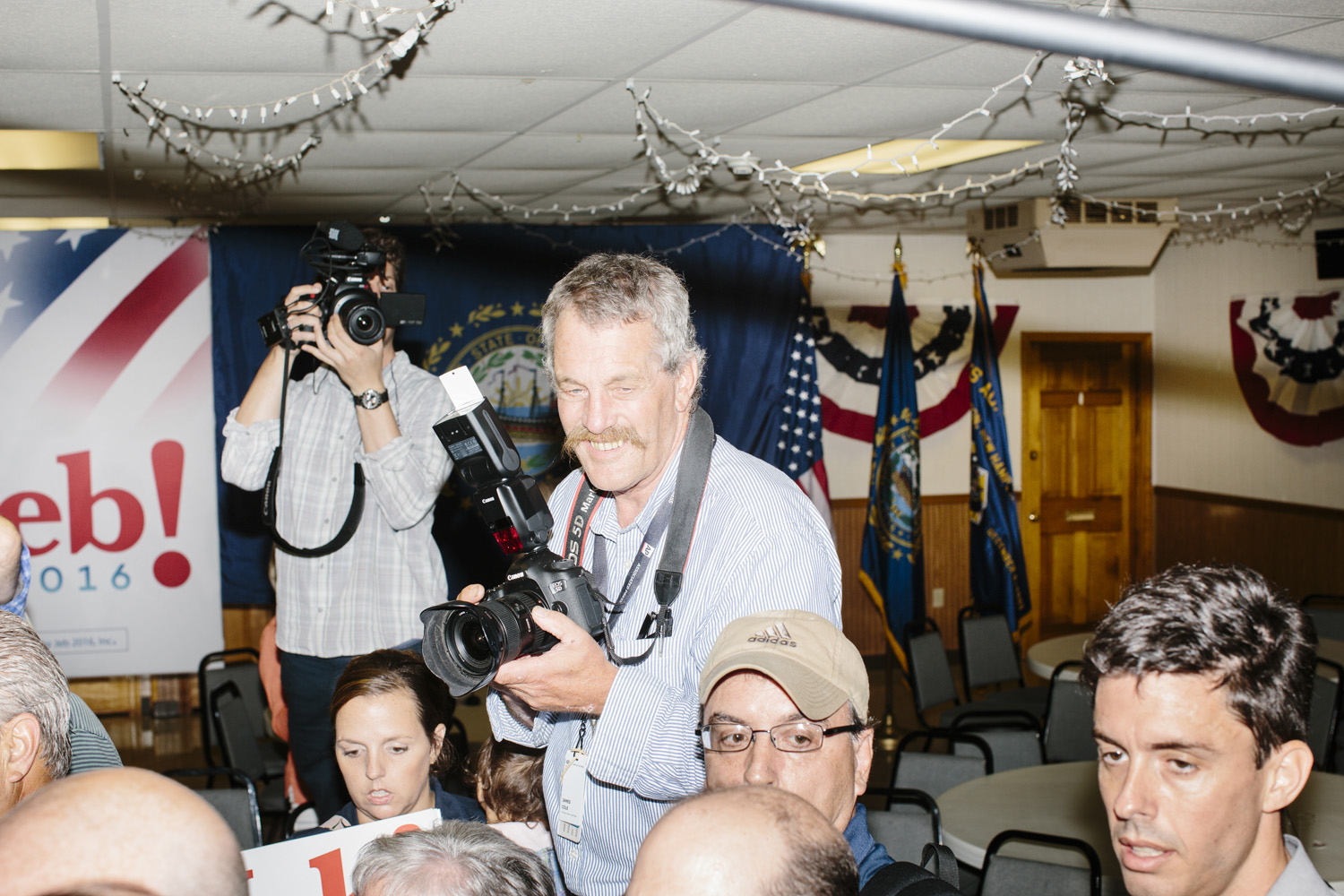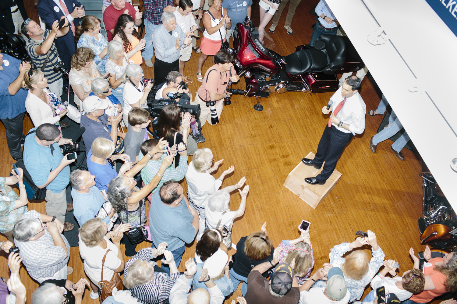 Starting in July 2015, I have photographed Republican and Democratic presidential candidates as they hit the campaign trail in New Hampshire, from meet-and-greets in public libraries to brewery tours to balloon festivals to gun stores to small town diners to function halls to community centers to university auditoriums. Many of the locations have been hosting candidates for decades, and they’re starting to show their age. The work has continued beyond the primary, as well. I’ve photographed aspects of the general campaign, the nominating conventions, voters across the country, and election night, all with the generous support of a variety of magazines and newspapers.